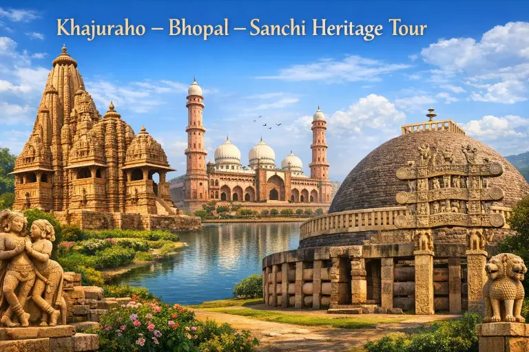 Madhya Pradesh, known as the “Heart of Incredible India”, is a culturally rich and diverse destination famous for ancient temples, UNESCO heritage monuments, wildlife sanctuaries, scenic hill stations, and spiritual pilgrimage sites. Our Madhya Pradesh tour packages are ideal for pilgrims, families, heritage lovers, wildlife enthusiasts, and leisure travelers looking to explore Ujjain, Bhopal, Khajuraho, Pachmarhi, Jabalpur, Sanchi, and national parks with comfort and expert travel support.