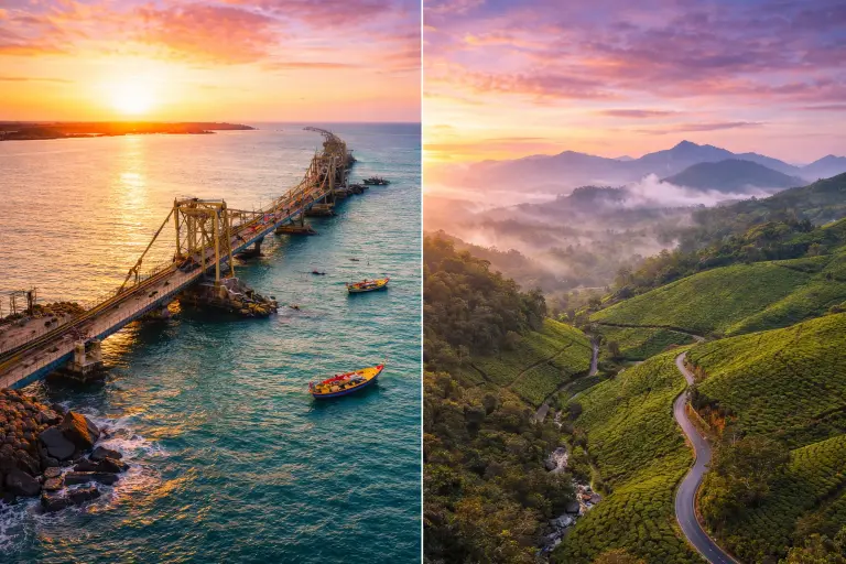 Rameshwaram and Kanyakumari are among South India’s most sacred and scenic travel destinations, famous for ancient temples, spiritual rituals, coastal beauty, sunrise and sunset views, and rich cultural heritage. When combined with Kerala’s hill stations and backwaters, these tours offer a perfect blend of spirituality, nature, and relaxation. Our tour packages are ideal for families, senior citizens, pilgrimage travelers, honeymoon couples, and leisure tourists.